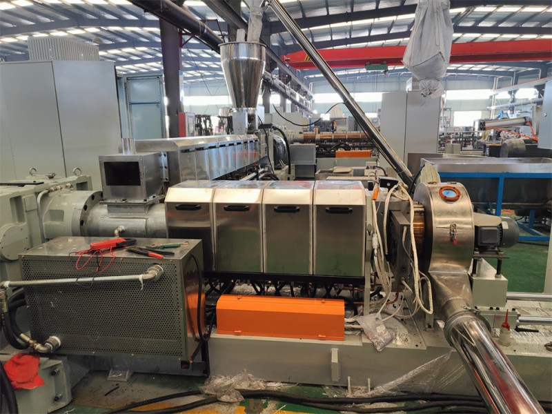 - 输送:通过提升机和锥双喂料机将混合物料输送到双螺杆造粒机。